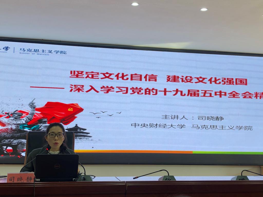 司晓静博士以“坚定文化自信,建设文化强国——深入学习党的十九届五中全会精神”为主题,从党的十九届五中全会关于文化的论述、什么是软实力、中国文化软实力建设取得的成果与面临的挑战、提高国家文化软实力与建设文化强国四个维度详细解读党的十九届五中全会精神。该宣讲理论结合实际,研机析理,解疑释惑,对于帮助宕昌县广大党员干部全面准确地领会党的十九届五中全会对文化建设的基本思路具有重要的意义。